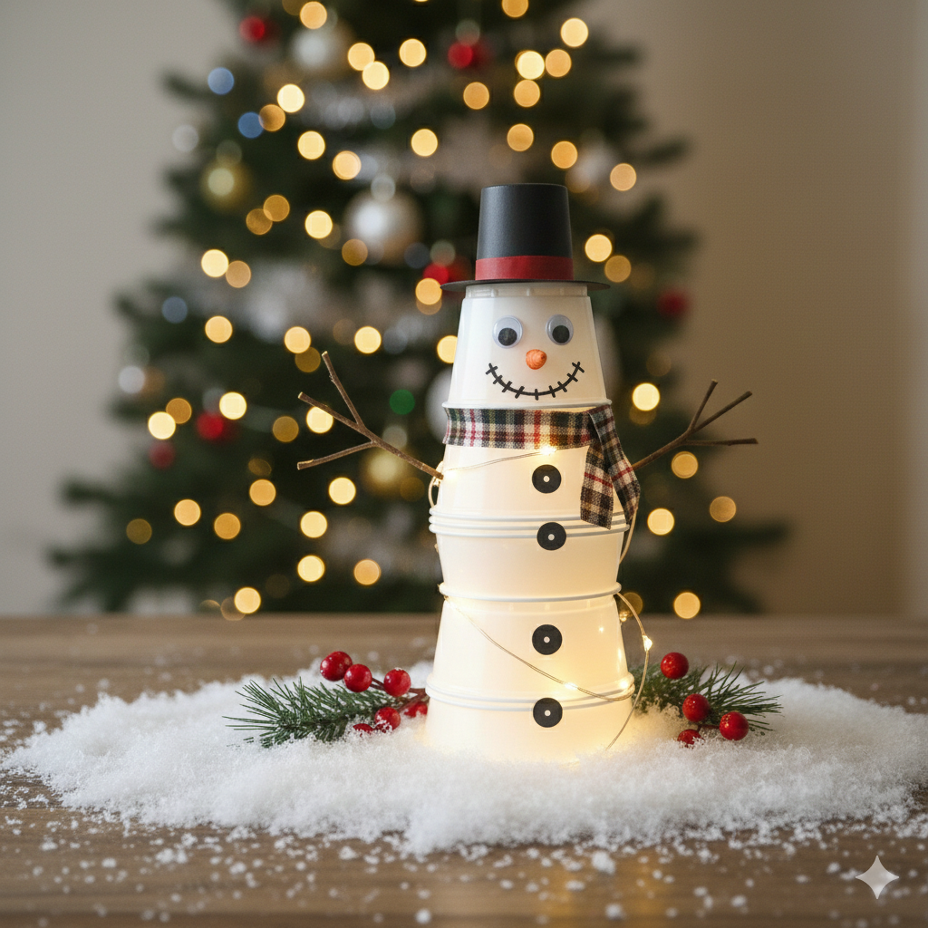 Fazer um boneco de neve de copos descartáveis é mais do que criar um objeto decorativo; é criar memórias. É o tipo de projeto que mantém as crianças ocupadas (passando os copos), os adolescentes engajados (projetando a estrutura e a iluminação) e os adultos focados na montagem.