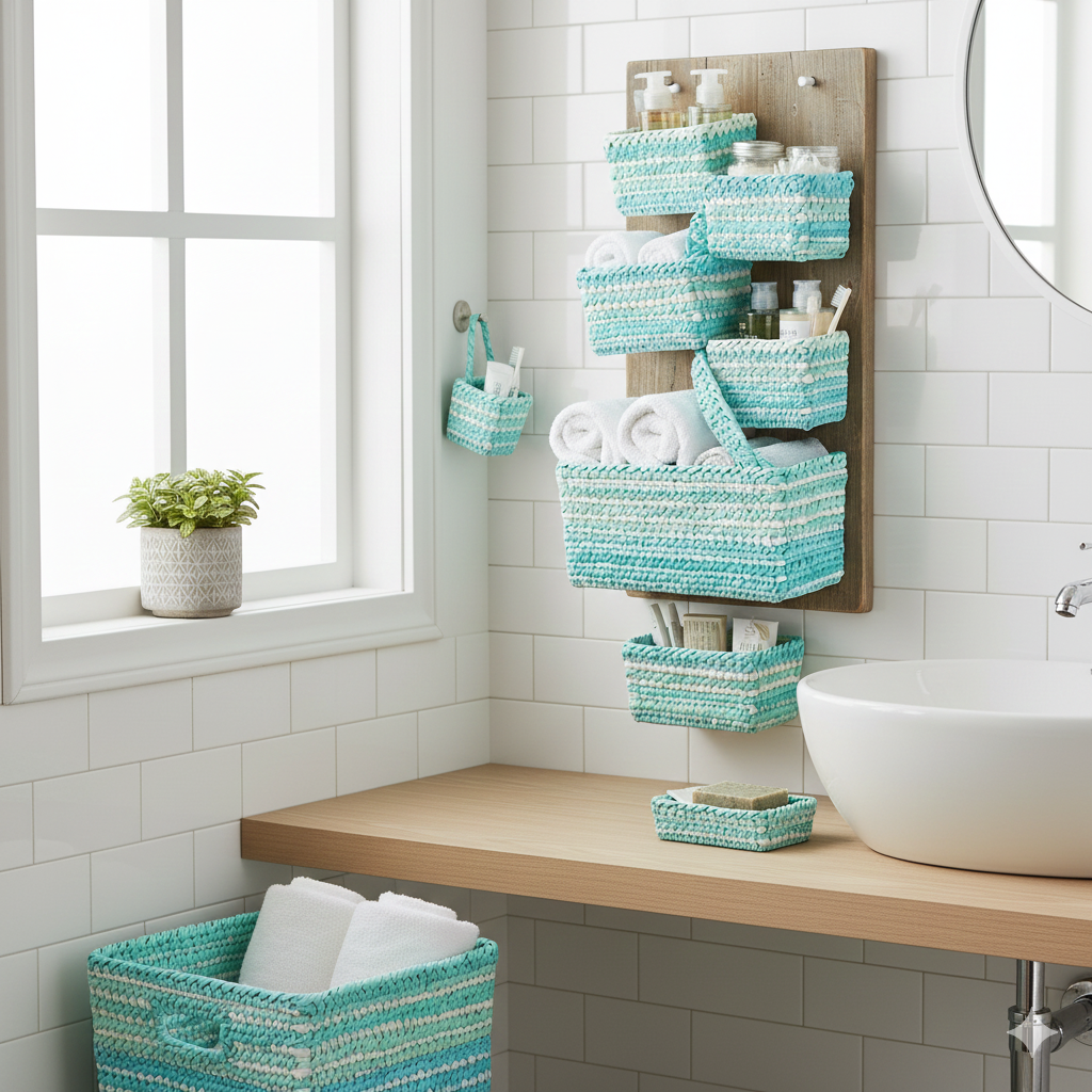 O banheiro é um ambiente úmido, e materiais como papelão, tecido e sisal podem mofar se não forem tratados. Aqui está o “pulo do gato” para seus organizadores durarem anos.