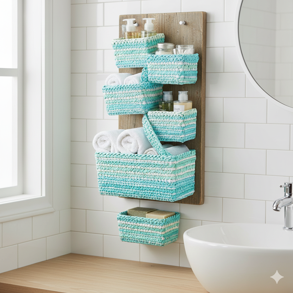 O banheiro é um ambiente úmido, e materiais como papelão, tecido e sisal podem mofar se não forem tratados. Aqui está o “pulo do gato” para seus organizadores durarem anos.